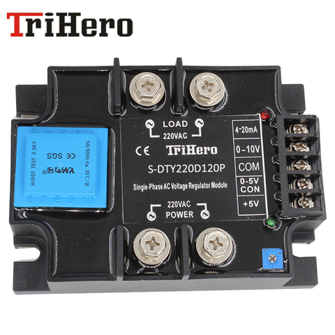Trihero 120A однофазный SCR контроллер мощности, SSR 4-20mA,0-10 В, S-DTY тиристорный модуль регулятора напряжения переменного тока, SCR регулятор мощности